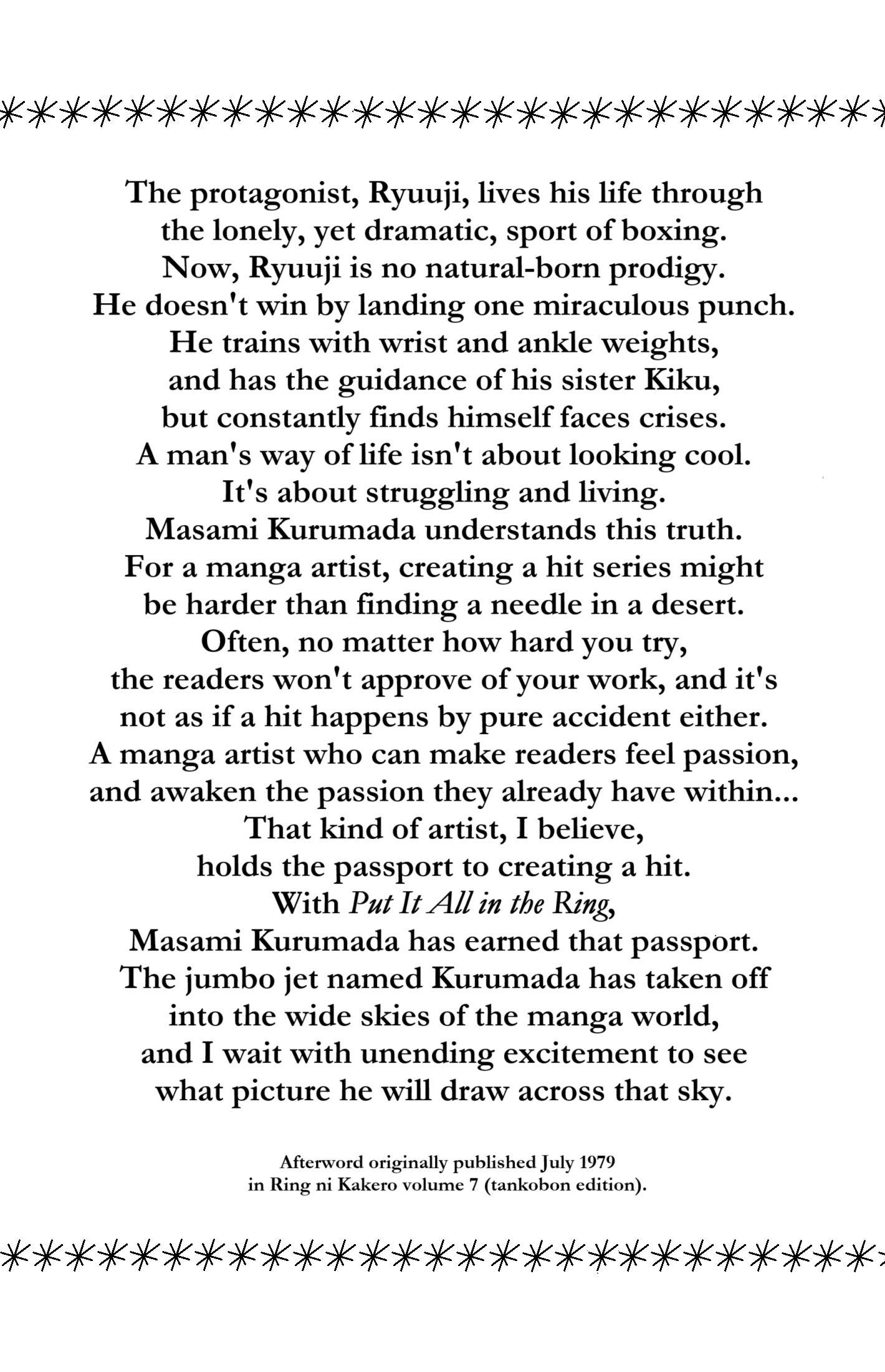 All chapters are in Put it All in the Ring!