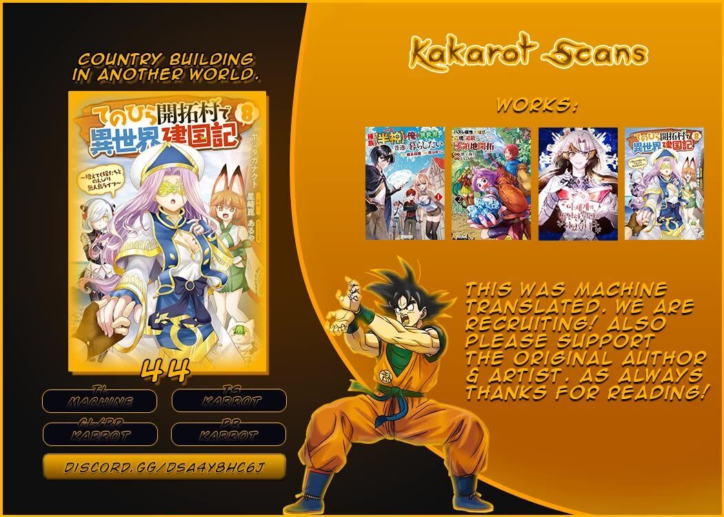 Start reading Tenohira Kaitaku Mura de Isekai Kenkokuki: Fueteku Yome-tachi to Nonbiri Mujintou Life Chapter 44 now and immerse yourself in an unforgettable adventure. Stay tuned for more updates and explore other thrilling manga titles at MangaLife.